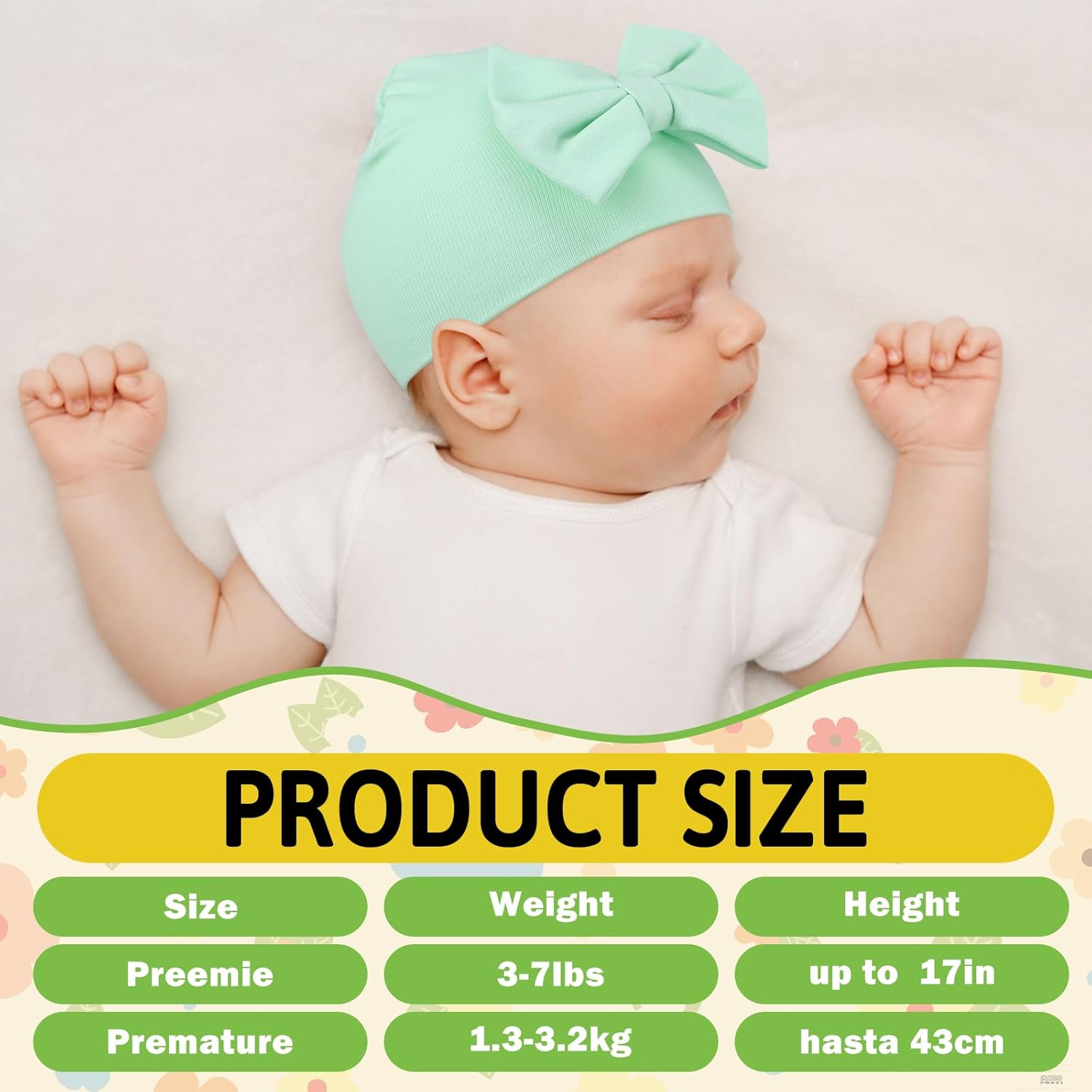 Cuffbow 4 Pcs Preemie Hats Bow Cap Warm Hospital Premature Baby Cotton Beanie for Premature Boy Girl Newborn 3-7 Lbs Infant