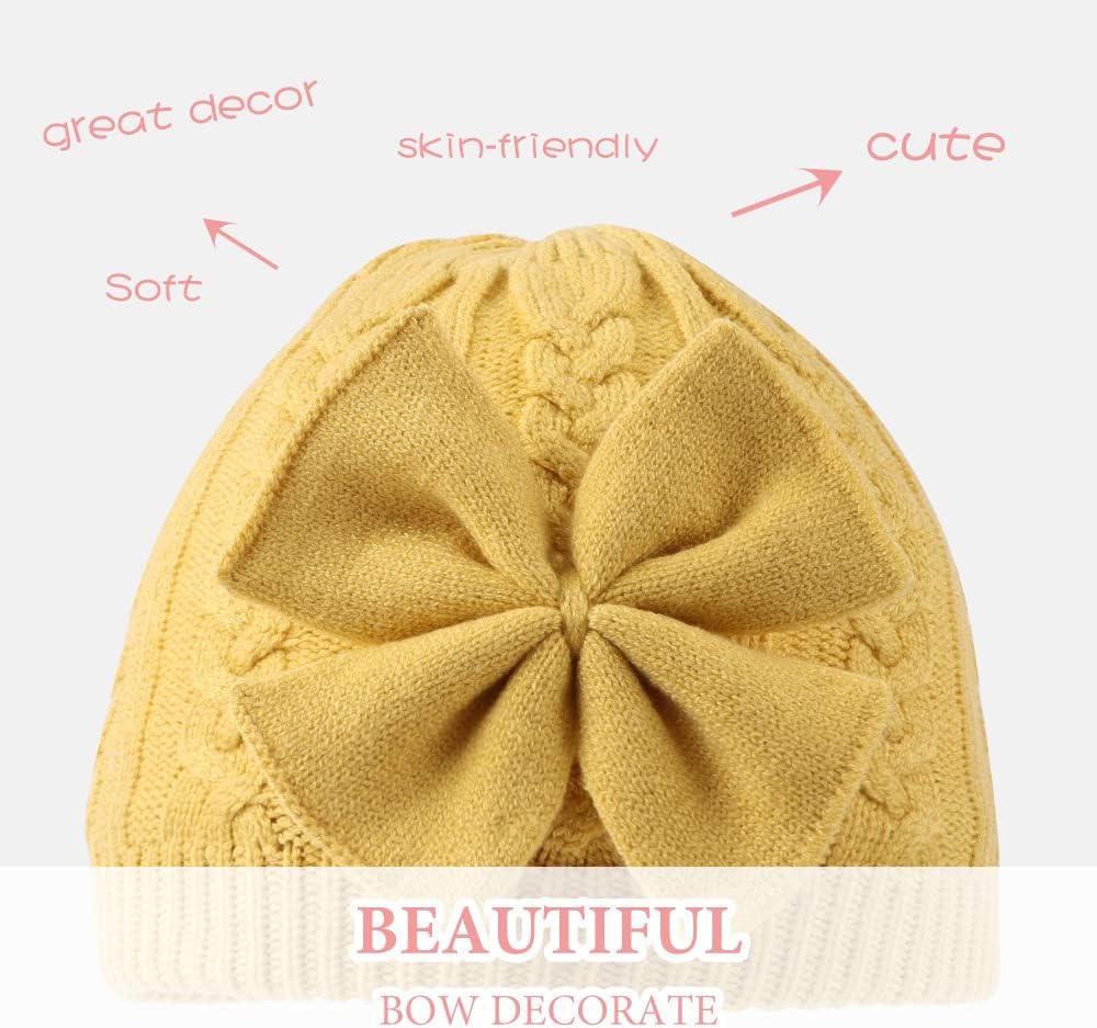 JANGANNSA Winter Warm Knitted Baby Hat for Girls Cotton Lined Infant Toddler Hat Autumn Cute Bow Classic Girls Beanie 0-6Y