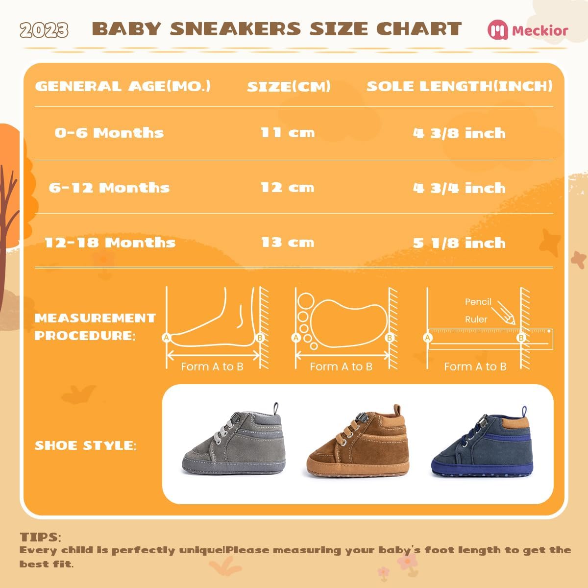 These Meckior shoes are beautiful, comfortable ( when immobilized ! ) and easy to put on baby’s feet, BUT they are very slippery on hardwood floors & the inside SOLES, which are NOT GLUED to the shoes, COME OFF whenever baby walks in them…These shoes have the looks, but NOT the quality… Went straight to GARBAGE, as they are unwearable : the moving soles give no support whatsoever when walking, as a consequence shoes become bulky inside & uncomfortable, and shoes WITHOUT SOLES can harm baby’s feet when stepping on hard or sharp objects…Very POOR quality, I DON’T recommend at all…