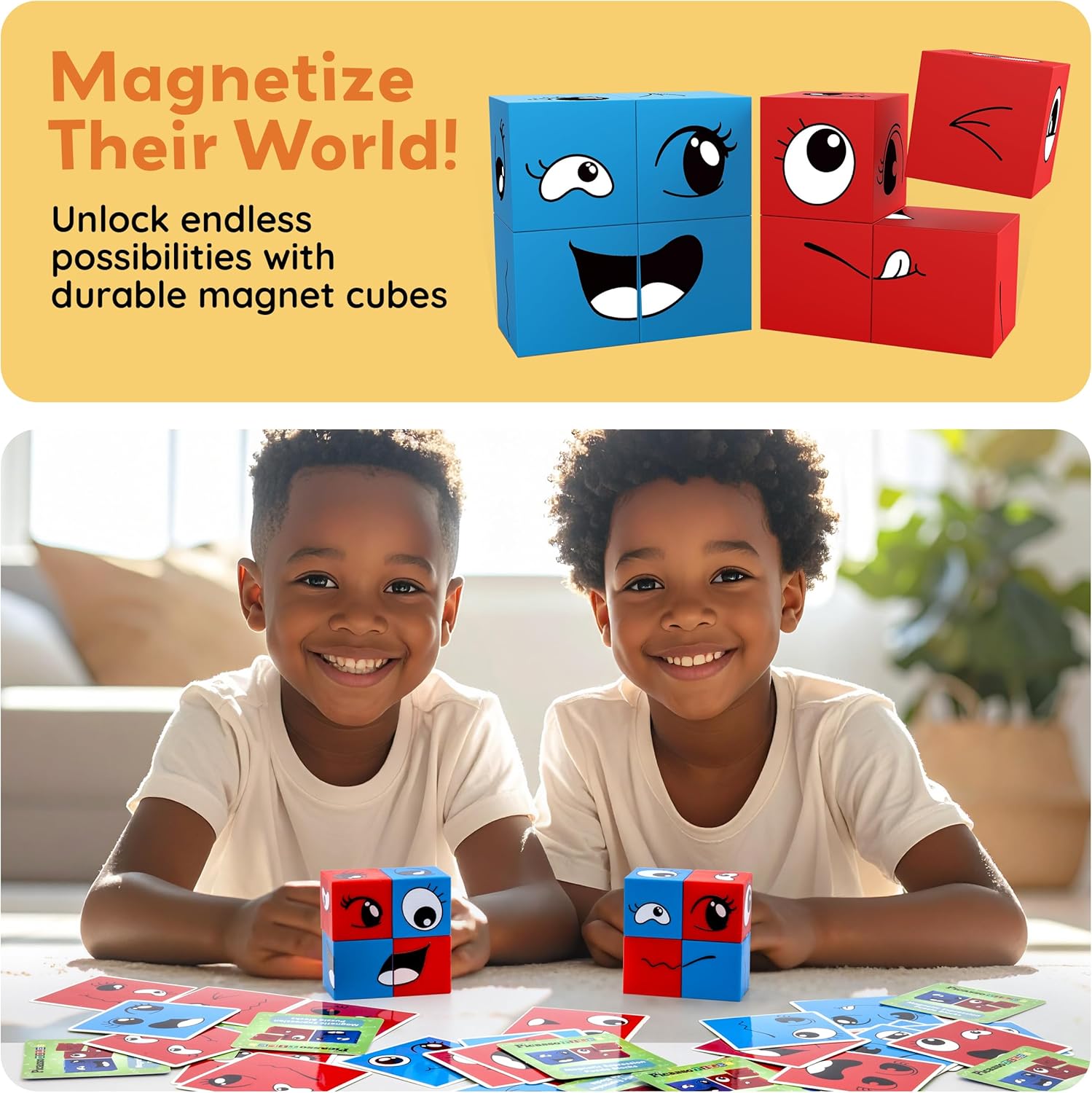 36 CARDS INCLUDED, LEARNING IS FUN – Magnet building cubes sensory toy creative playset magnetic building blocks with 36 expression mix & match templates to cultivate STEAM learning skills for preschool, kindergarten, pretend play, group activity, classroom, toddlers, teamwork, boys and girls age 3+. Easy to construct with vibrant full color prints on every side. Facilitate fine motor and problem solving skill by promoting creativity through mixing and matching puzzle cubes in different ways