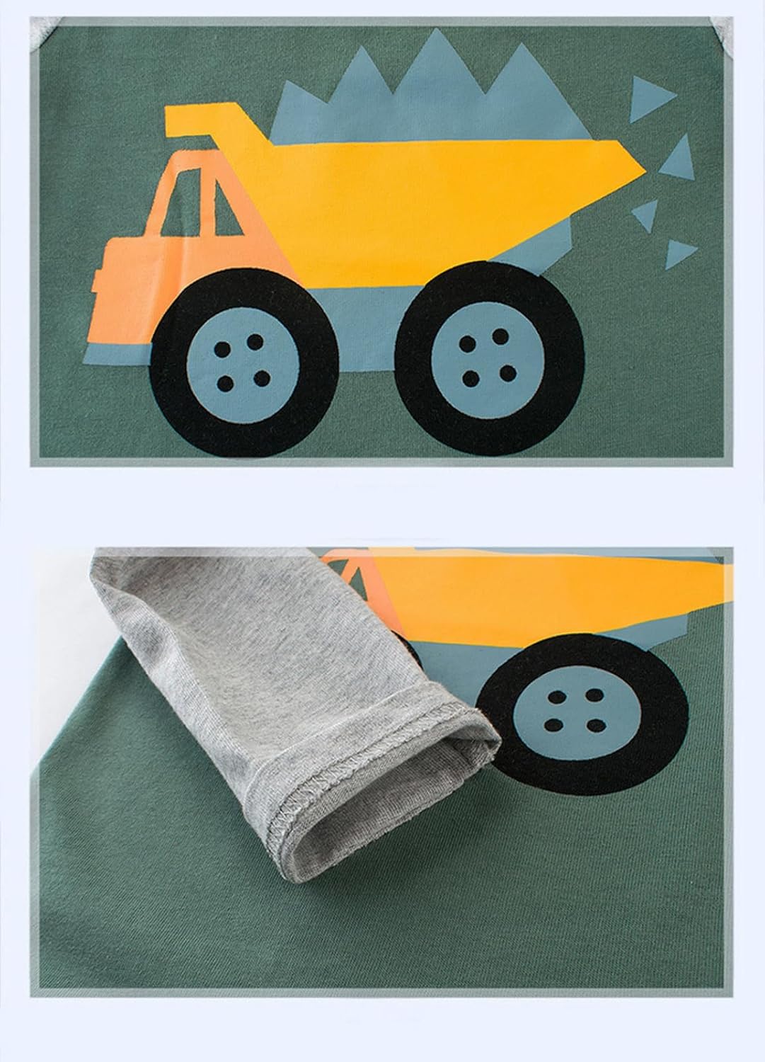 Cute Excavator and cars printed T-shirts, will add a splash of vibrant design to Autumn and Winter