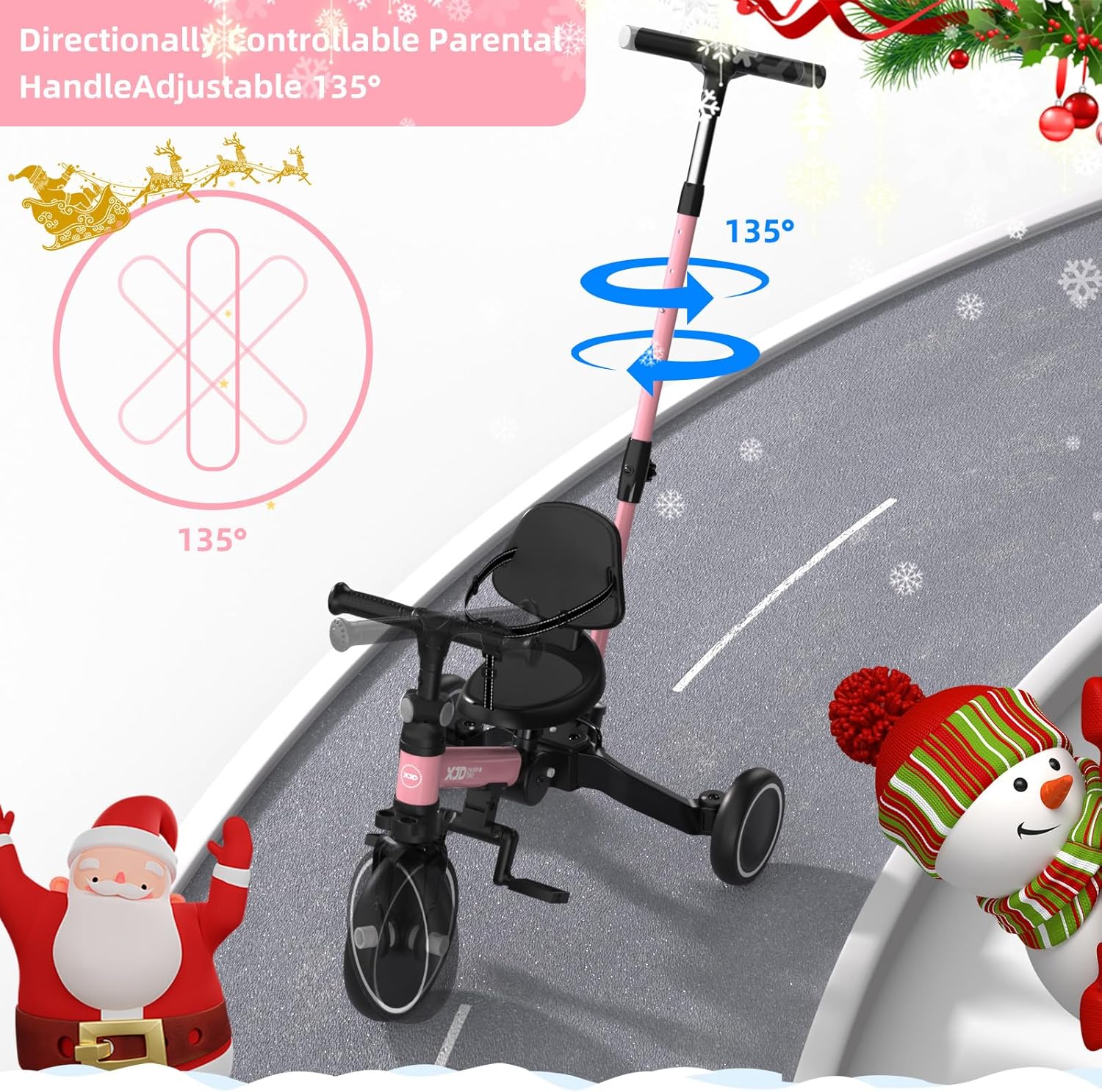 MULTIFUNCTIONAL TRICYCLE: This newly upgraded toddler tricycle has five modes to switch between at will, push balance bike mode, tricycle mode, balance bike mode, and slide mode